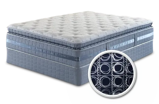 An innerspring mattress is made with a steel coil innerspring support system, with various foams and fibers on top to provide comfort at the surface. Serta offers a variety of innerspring constructions, including their Continuous Support® innerspring and their most advanced Duet™ Coil Individually Wrapped Coil-in-Coil innerspring.